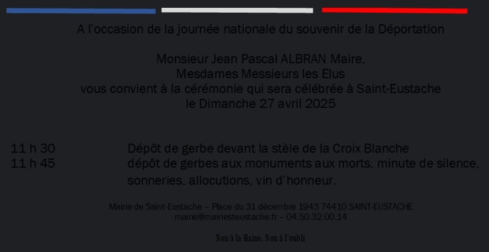 La Cérémonie officielle présidée pat Mme la Préfète de la Haute-Savoie sera organisée le Dimanche 27 avril à 11h square des Martyrs de la Déportation, clos Bonlieu à Annecy.